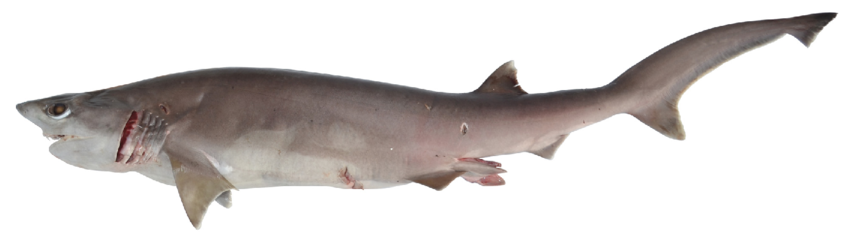 Hexanchus and other cow sharks are characterized by their unique dentition, with lower teeth being particularly robust and triangular, often bearing serrated edges. These features suggest adaptations for capturing and consuming a variety of prey, including fish, cephalopods, and crustaceans, in the deep-sea environments they inhabit.