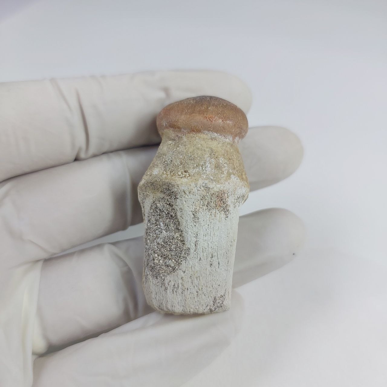 This unusual Globidens tooth belongs to Igdamanosaurus aegyptiacus, previously classified under the genus Globidens. Most Mosasaurs had sharp teeth evolved for capturing slippery prey like fish. However, Igdamanosaurus boasted semispherical teeth with rounded acorn-like points, ideal for crushing tough armored prey such as small turtles, ammonites, and bivalves.