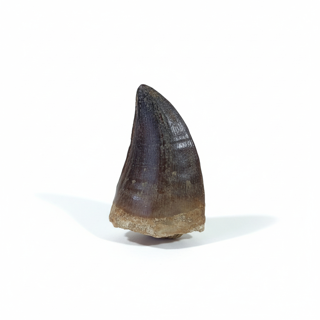 This is a high-quality 2.1″ fossil MOSASAUR Tooth (Prognathodon Anceps.) tooth Big species of Mosasaurus sourced from the Late Cretaceous phosphate deposits within the Sidi Chennane Basin of Morocco. Renowned for its exceptional preservation, this tooth is a prized specimen for collectors and buyers alike.
