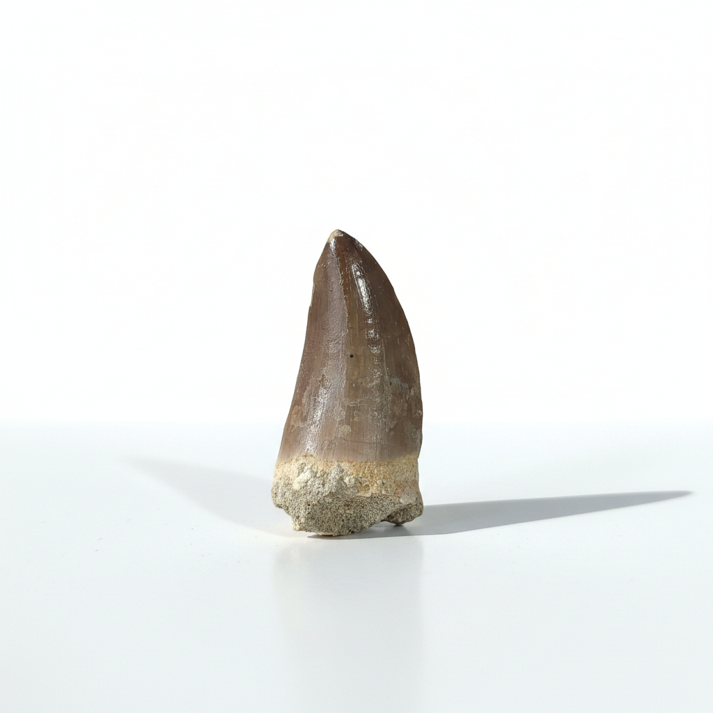 This is a 2.2″ Rare MOSASAUR Tooth fossil (Prognathodon Anceps.) Big species of Mosasaurid sourced from the Late Cretaceous phosphate deposits within the Sidi Chennane Basin of Morocco. Renowned for its exceptional preservation, this tooth is a prized specimen for collectors and buyers alike.