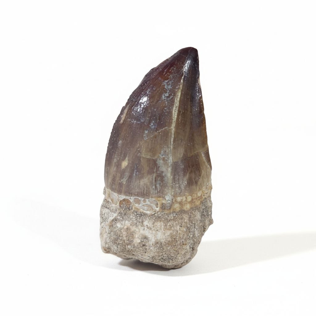 This is a high-quality 2.36″ fossil MOSASAUR Tooth (Prognathodon Anceps.) tooth Big species of Mosasaurus sourced from the Late Cretaceous phosphate deposits within the Sidi Chennane Basin of Morocco. Renowned for its exceptional preservation, this tooth is a prized specimen for collectors and buyers alike.