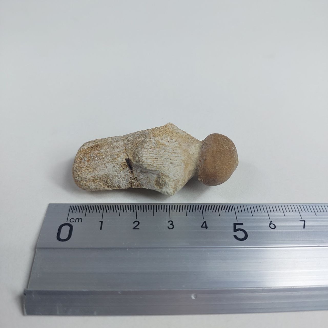 This unusual Globidens tooth belongs to Igdamanosaurus aegyptiacus, previously classified under the genus Globidens. Most Mosasaurs had sharp teeth evolved for capturing slippery prey like fish. However, Igdamanosaurus boasted semispherical teeth with rounded acorn-like points, ideal for crushing tough armored prey such as small turtles, ammonites, and bivalves.