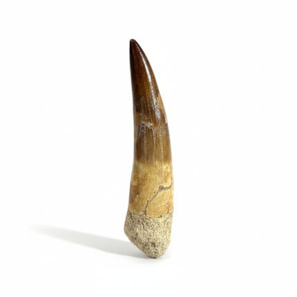 This 2.75 inches fossilized tooth belonged to a Late Cretaceous plesiosaur species, specifically Zarafasaura oceanis. Researchers discovered it in the phosphate deposits of the Oulad Abdoun Basin in Morocco.
