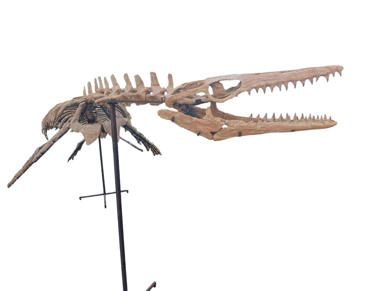 We have a collection of high-quality Mosasaur fossils, including Mosasaurus skeletons, jaws, and all bones and teeth.
