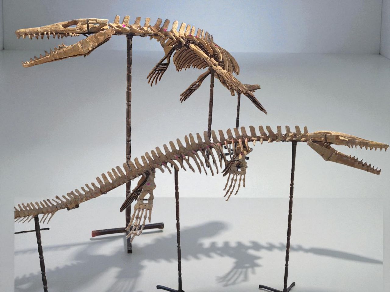 Our expert team spent nearly ten months carefully extracting and preparing this Mosasaur fossil. During the process, we used advanced techniques to preserve the bones. Approximately 60% of the skeleton is original, while the remaining parts are reconstructed from other Mosasaur fossils. This ensures a complete, display-ready specimen.