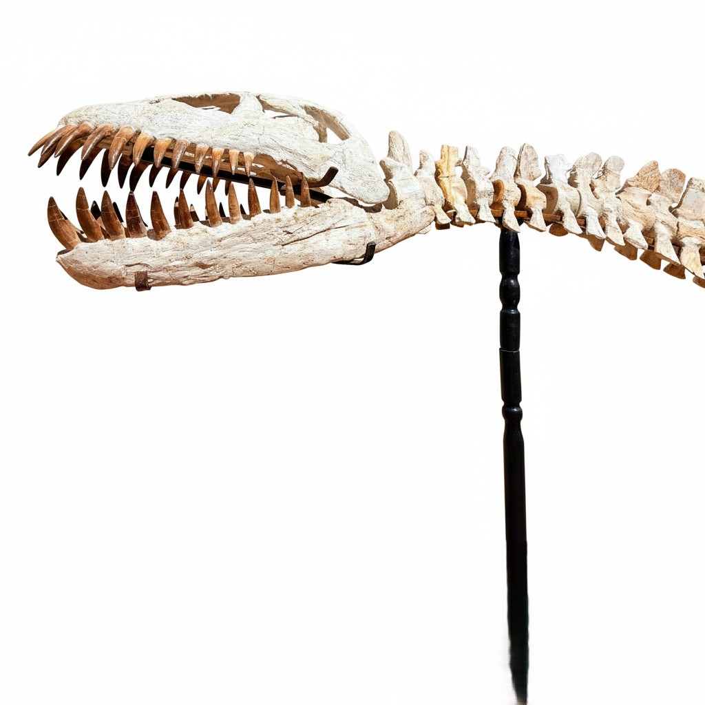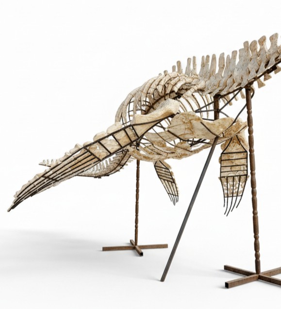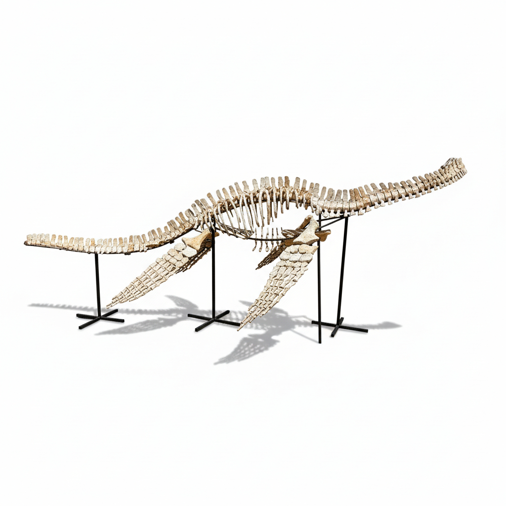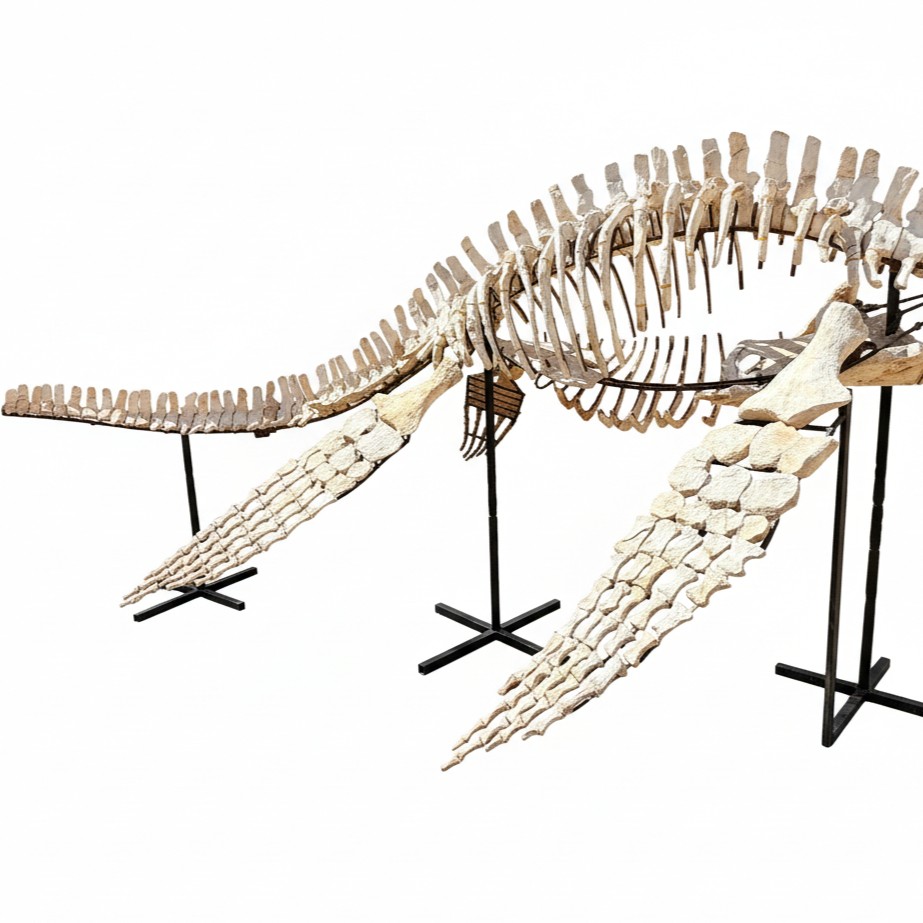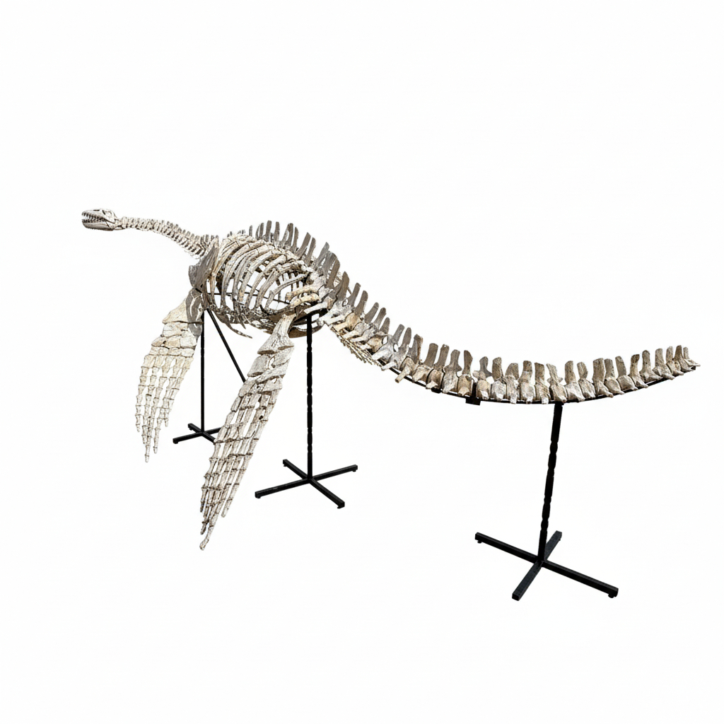 Approximately 80% of the skeleton consists of original fossilized bones from a single individual. Additionally, preparators carefully completed the remaining elements using authentic plesiosaur fossil material from closely related specimens, ensuring anatomical accuracy and structural continuity.