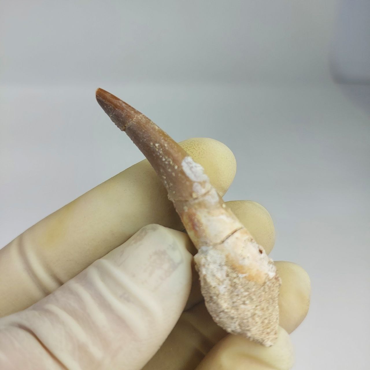 This 2.5-inches fossilized tooth belonged to a Late Cretaceous plesiosaur species, specifically Zarafasaura oceanis. Researchers discovered it in the phosphate deposits of the Oulad Abdoun Basin in Morocco.