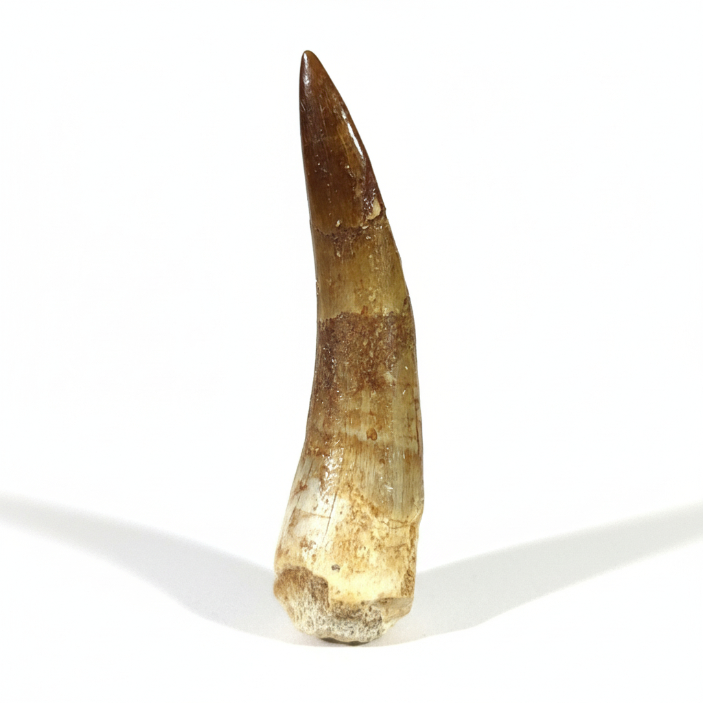 This 2.6-inch fossilized tooth belonged to a Late Cretaceous plesiosaur species, specifically Zarafasaura oceanis. Researchers discovered it in the phosphate deposits of the Oulad Abdoun Basin in Morocco.